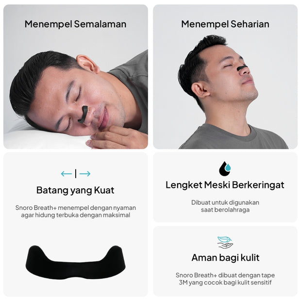 Snoro Breath+ Nasal Strip- Mengurangi Mendengkur Mengorok, Meningkatkan Asupan Oksigen & Tidur